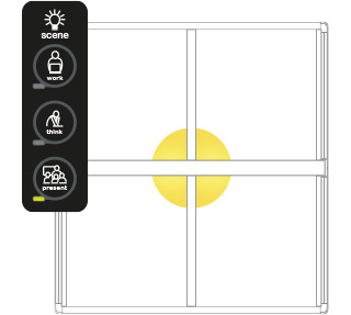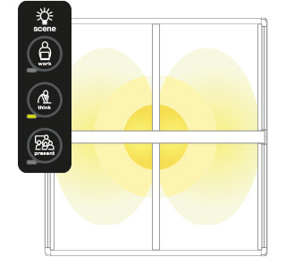 The intuitive scene settings of Work, Think & Present deliver variable lux levels - up to 850 lux on the table and a general ambient lighting of 450 lux.